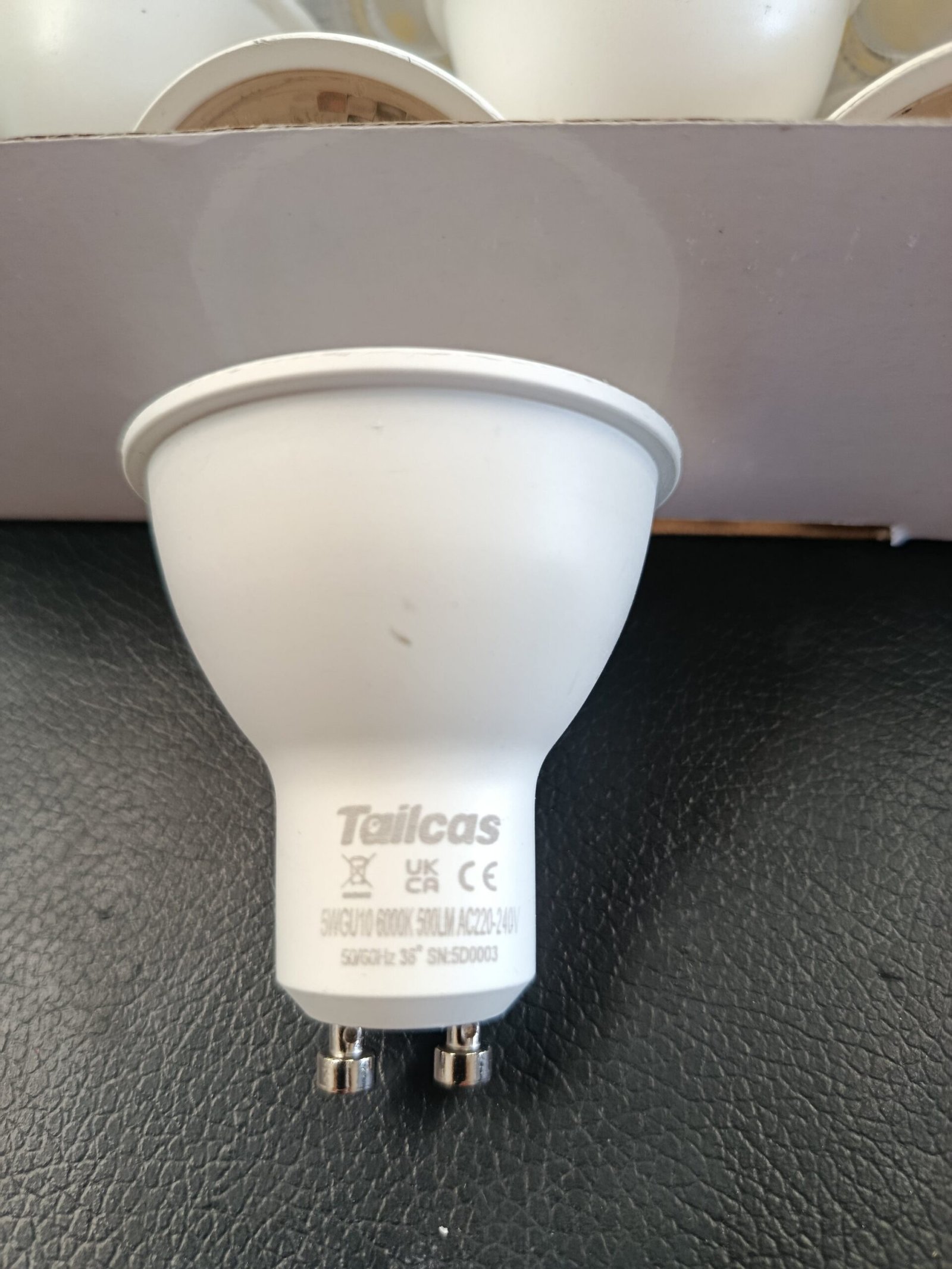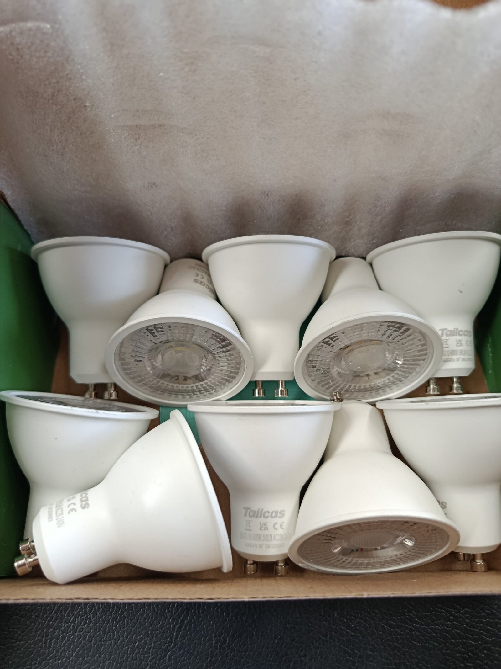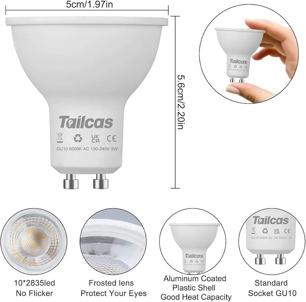 Tailcas 10 x Bombilla LED GU10 7W, Blanco Frío 6000K, Equivalente de Lámpara Halógena de 50W, 500 Lúmenes, AC100-240V, No regulable Sin Parpadeo, Ángulo de haz de 38°