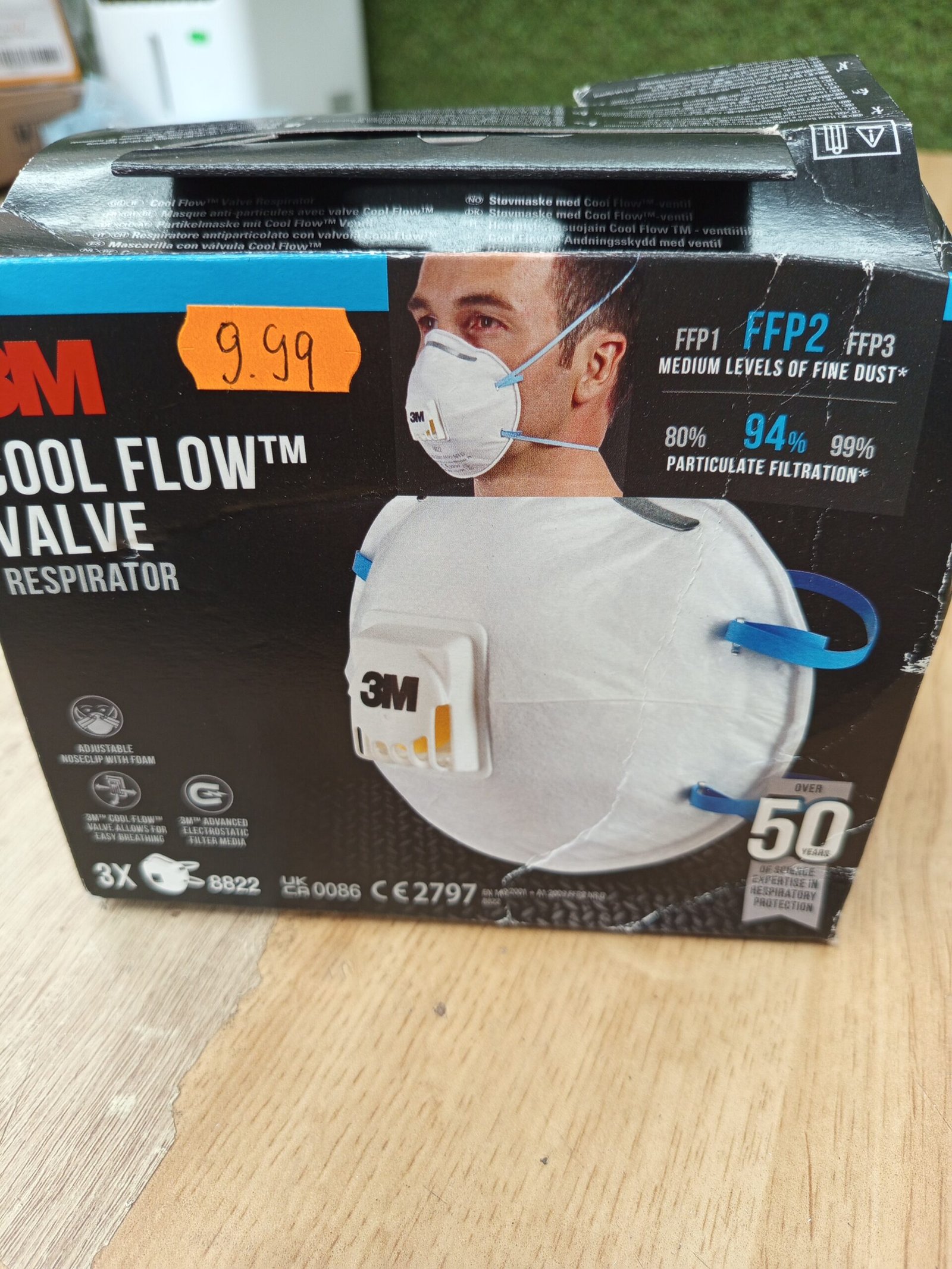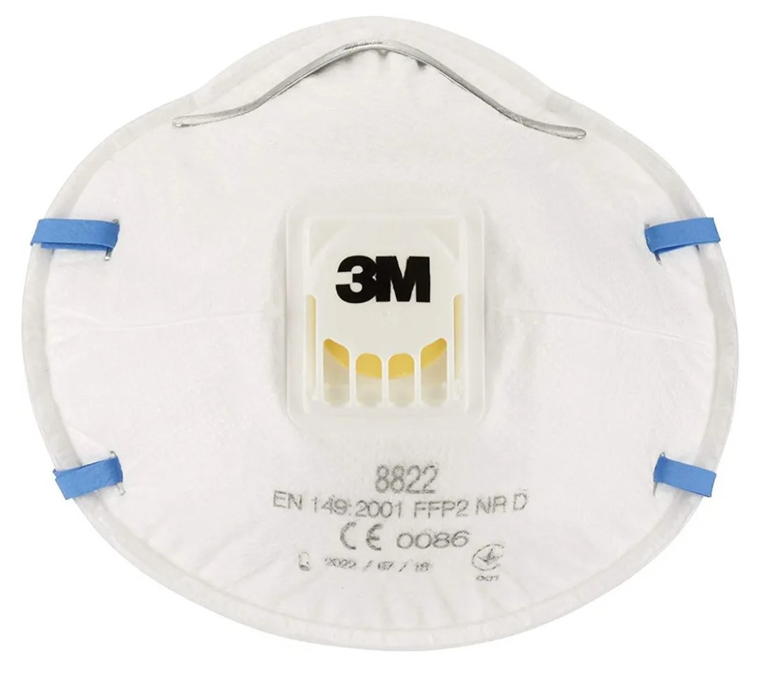 3M Mascarilla para para lijado manual y herramientas eléctricas, contra polvo fino, 8822C3, FFP2 con válvula 3M Cool Flow, Paquete de 3 mascarillas