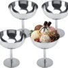 Paquete de 4 copas de postre para helado, diámetro 10 cm, 200 ml, de acero inoxidable, para cócteles, ensalada de frutas, yogur y pudín de frutas, para bodas y fiestas (altas).