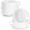 4 cuencos de sopa de 8.8 onzas con asas, cuencos de cerámica para sopa de cebolla francesa, cuencos blancos para servir postre, hornear, pudín, cereales, aperitivos, frutas