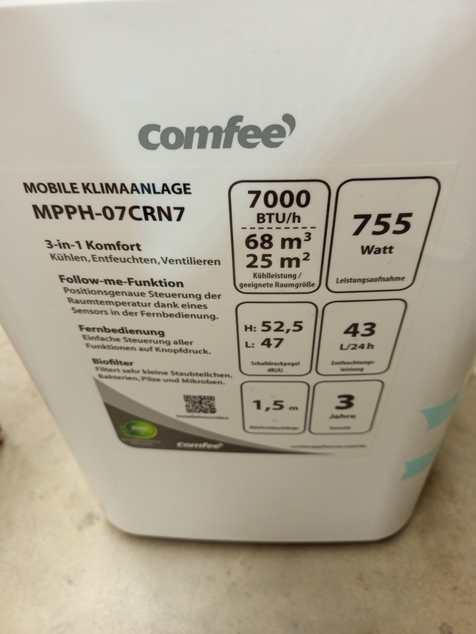 Capacidad de enfriamiento: 7000 BTU/h, adecuado para habitaciones de hasta 25 m² o 68 m³.