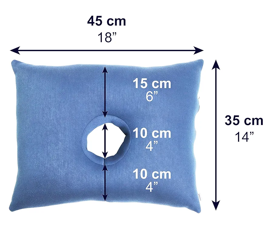 KMINA Almohada con Agujero Condrodermatitis, Cojín Antiescaras para Oreja, Almohadas Piercing para Dormir de Lado, Azul – Fabricado en España
