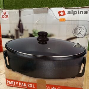Esta sartén eléctrica para morder alpina se puede llamar con razón una cacerola XXL. Tiene un gran diámetro de 42 cm y una potencia de 1500 vatios. Por lo tanto, es ideal para cocinar para grupos, como familias numerosas o fiestas.