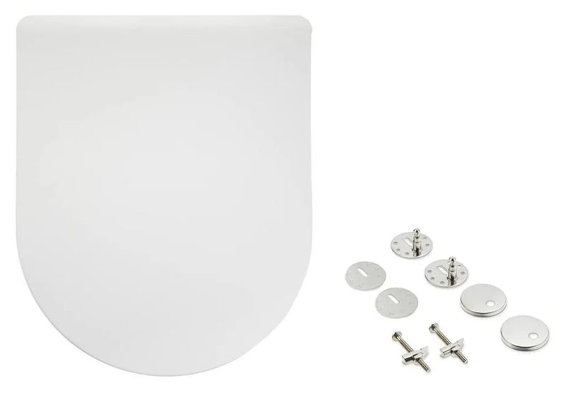 Amazon Basics Asiento de inodoro de urea En forma de D, acabado mate, Blanco, 36.5 x 43 cm Hecho de urea antiestática de alta calidad, resistente a los arañazos y con una superficie lisa que evita el 99,9% del crecimiento bacteriano para un uso seguro y familiar