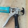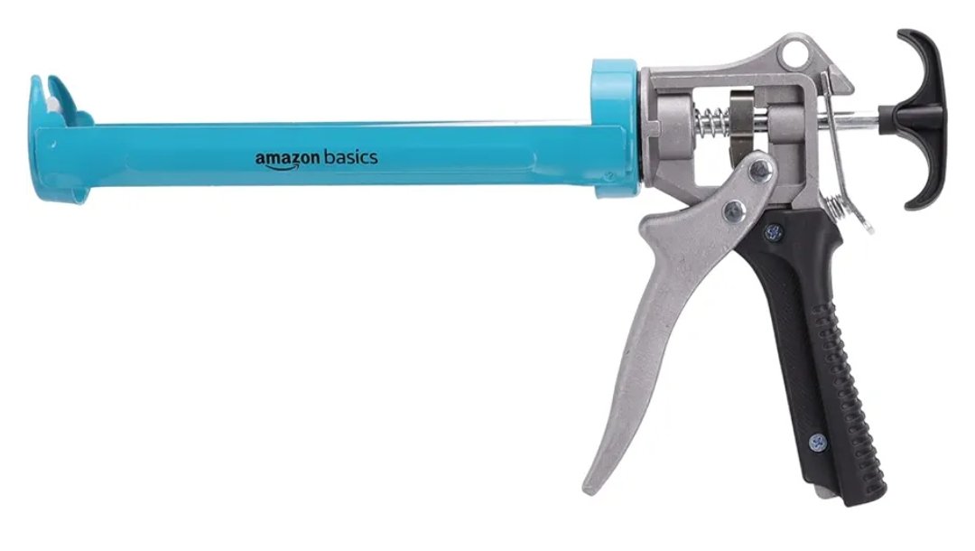 Amazon Basics Pistola para sellado de calafateo, resistente, 310ml, relación de fuerza 12:1, mango de aluminio con empuñadura de soporte de plástico, 0.3 litros, Azul y gris