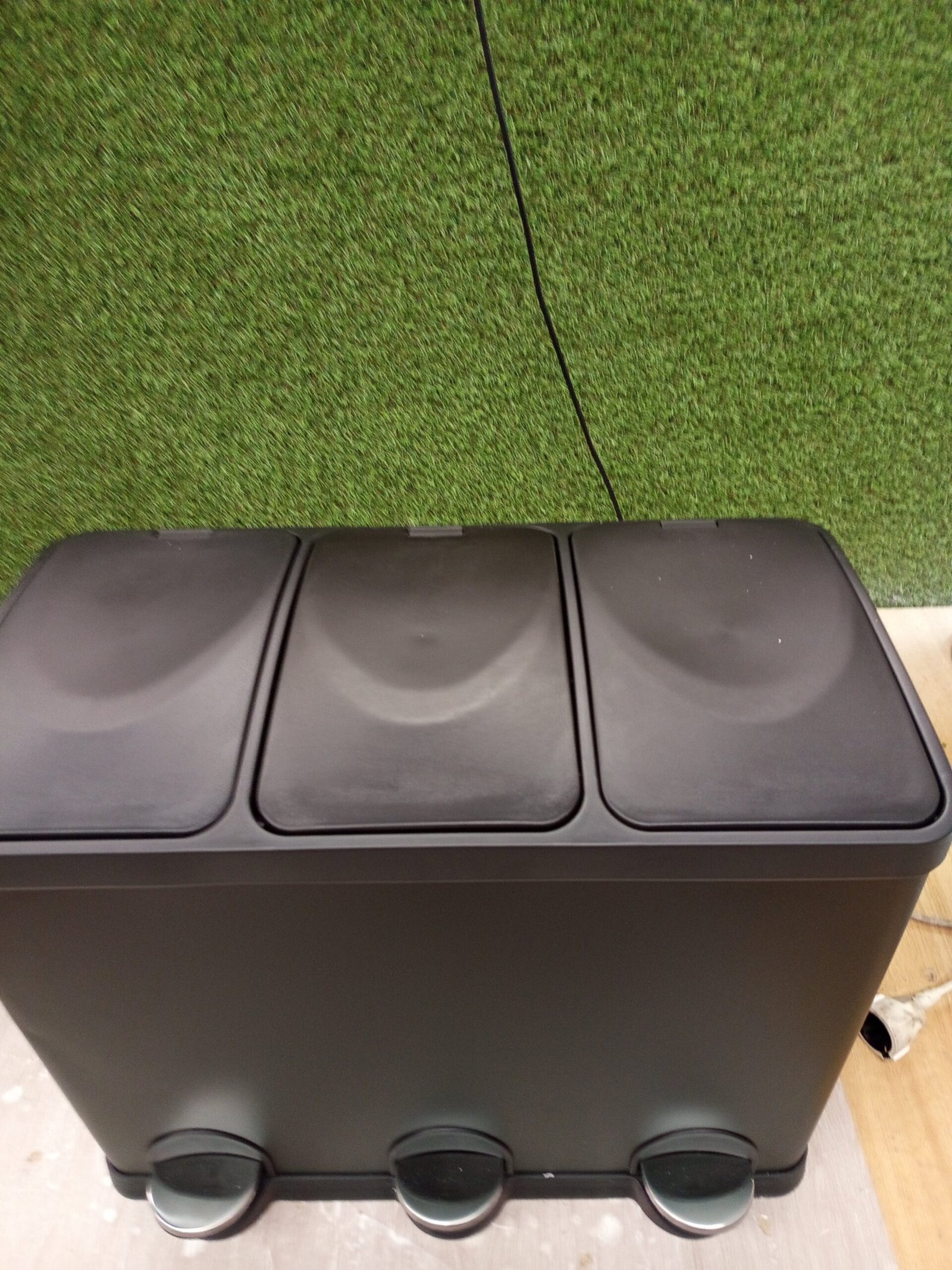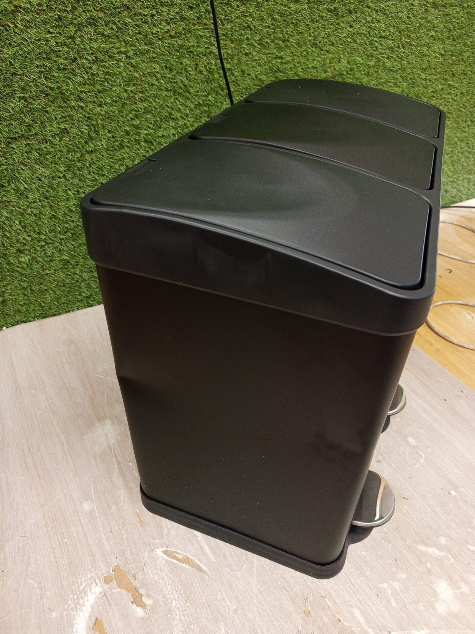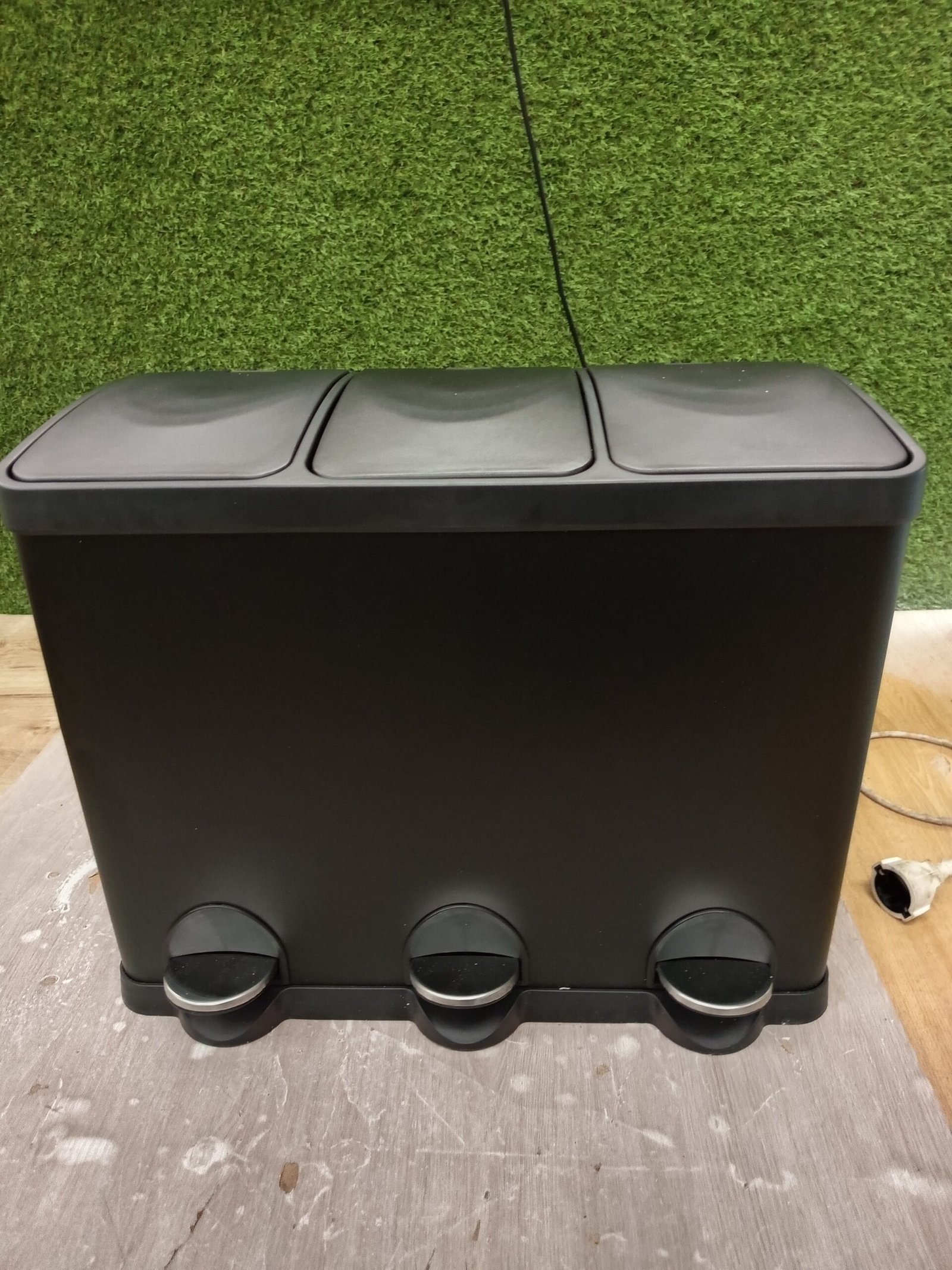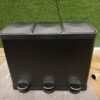 Este cubo de basura triple es una solución innovadora para la clasificación y reciclaje de los residuos del hogar.