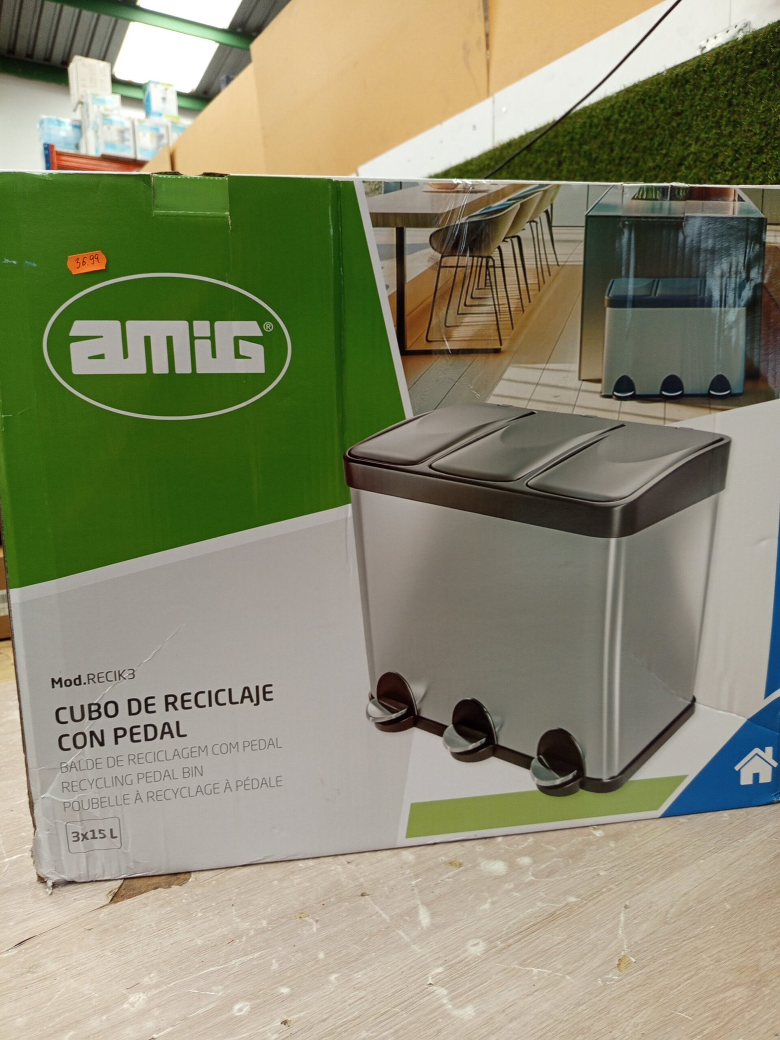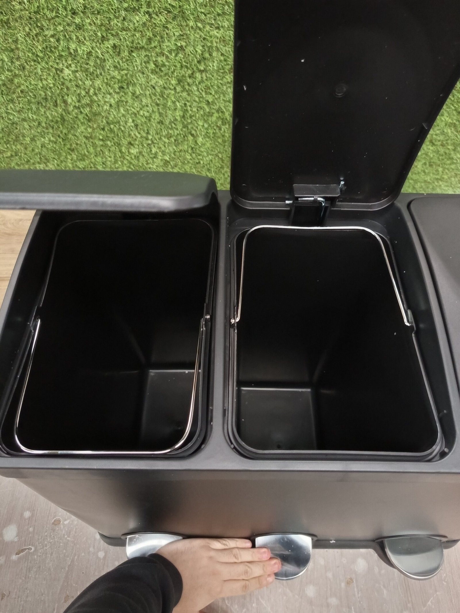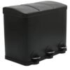 Amig – Cubo de Basura Triple con Pedales 45 litros – 3 Compartimentos Extraíbles de 15 litros – Cubo de Reciclaje para Cocina – Acero – 60 x 37 x 49 cm – Negro Mate