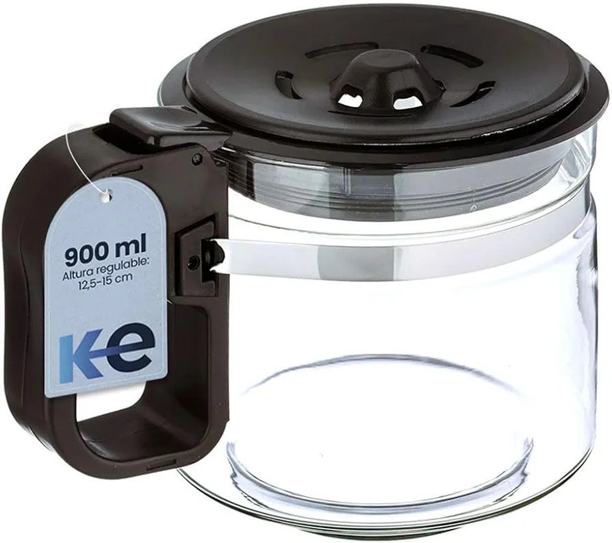 Anakel Home Jarra Cafetera Universal Grande Compatible con Cafetera Americana o de Goteo Eléctrica | Vidrio, Tapa Antigoteo, Altura Regulable 12,5-15 cm, 900ml