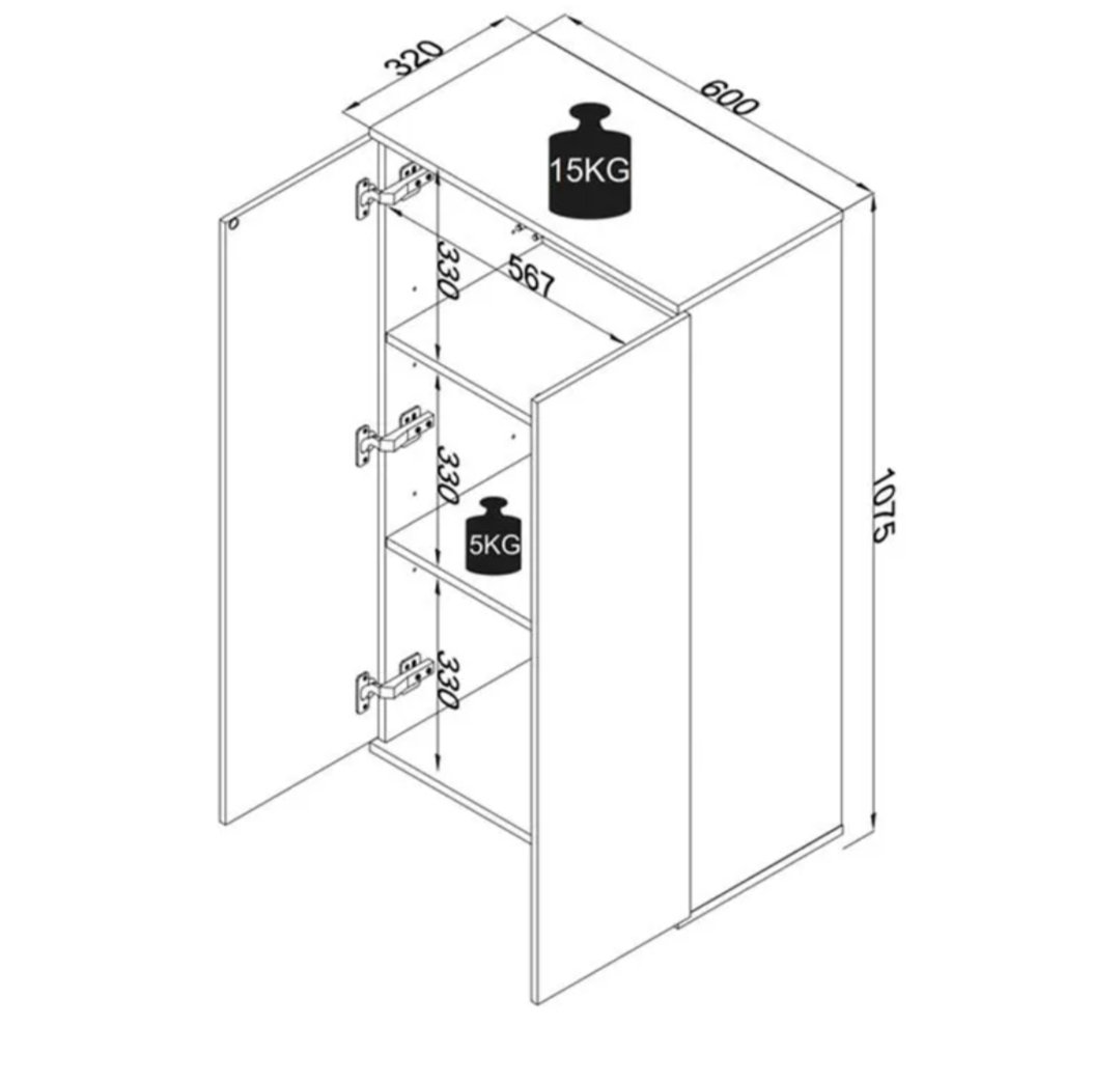 Archivador VCM Dalosa de 3 compartimentos 918323, de madera, 60 x 108 x 32 cm (ancho/alto/profundidad), color antracita