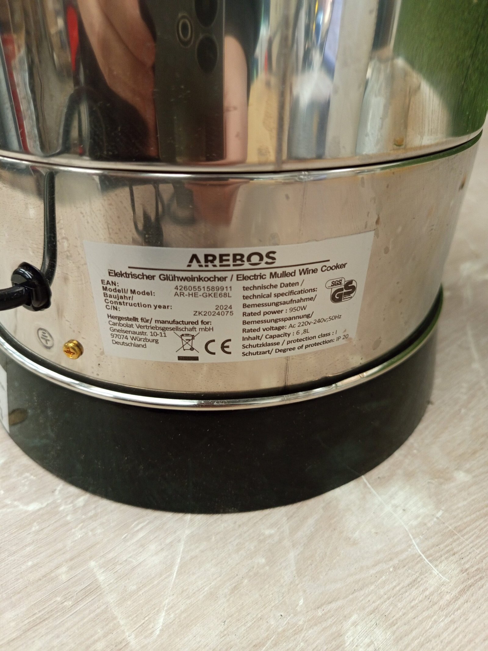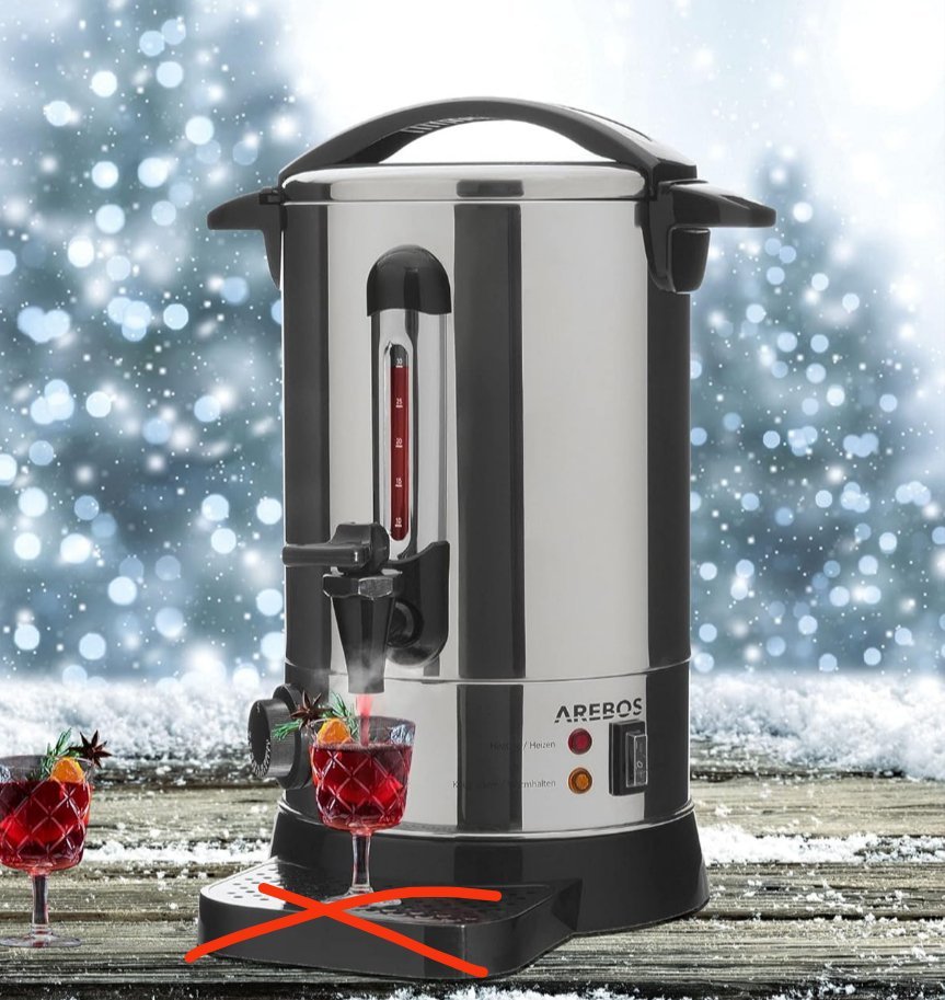 Arebos Cocina eléctrica para vino caliente 950 W | 6,8 L | Hervidor para Vino Caliente | Dispensador de Bebidas Calientes con grifo de salida | termostato y protección contra sobrecalentamiento