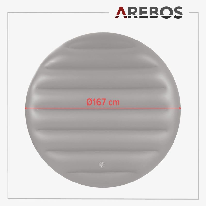 Esta cubierta de alta calidad está fabricada con un robusto material de PVC resistente a la rotura y a la intemperie. Con un grosor de 16 cm y un diámetro de 167 cm cuando está inflada, ofrece una protección y una retención del calor óptimas.