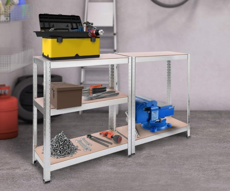 Sistema enchufable sin herramientas | Resistentes estantes de MDF | 5 estantes | Color galvanizado | Grosor del material del armazón extra grueso de 0,7 mm.