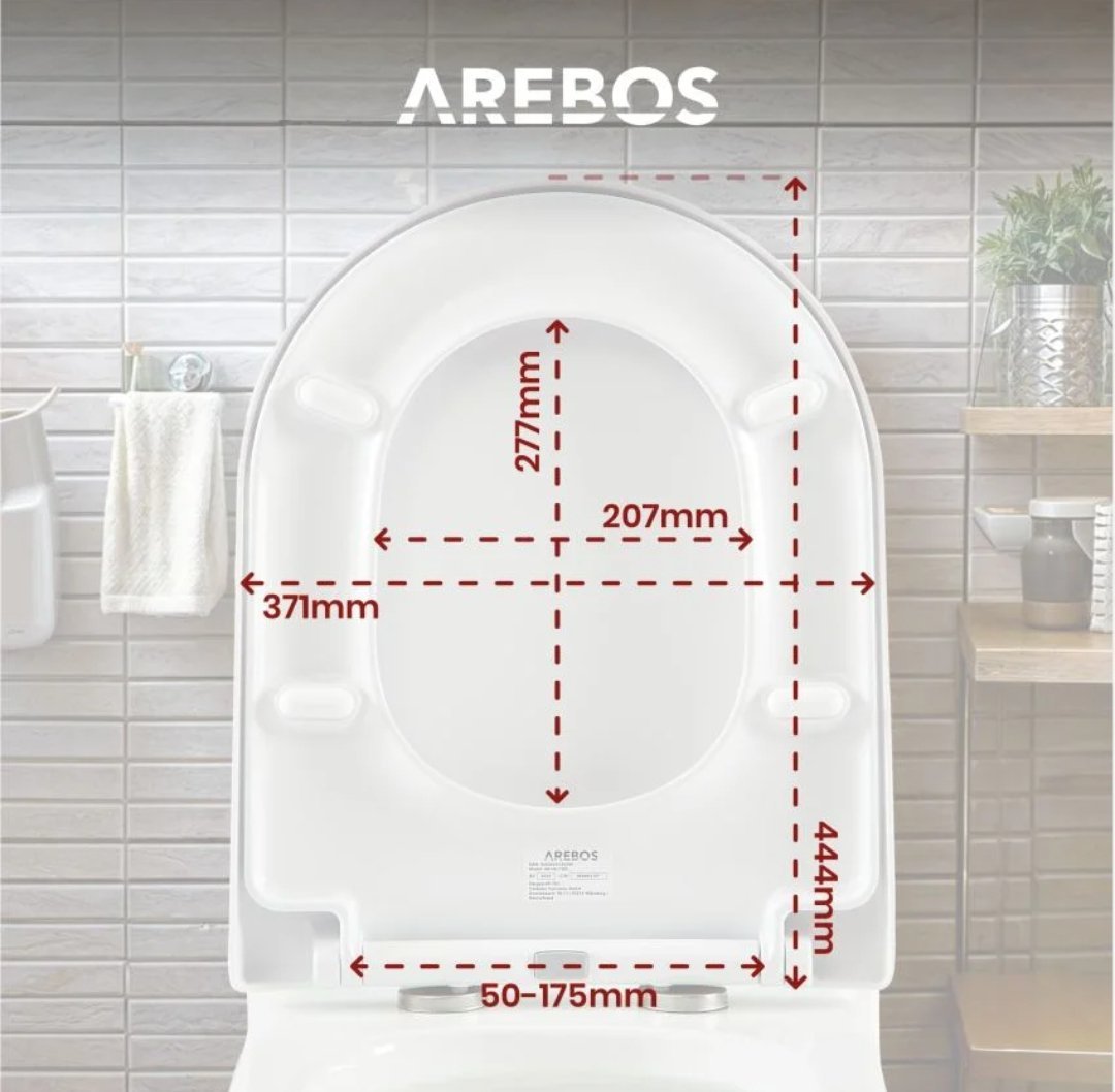 El cómodo asiento de inodoro de Arebos combina un acabado de alta calidad y funciones prácticas para una agradable experiencia en el baño.