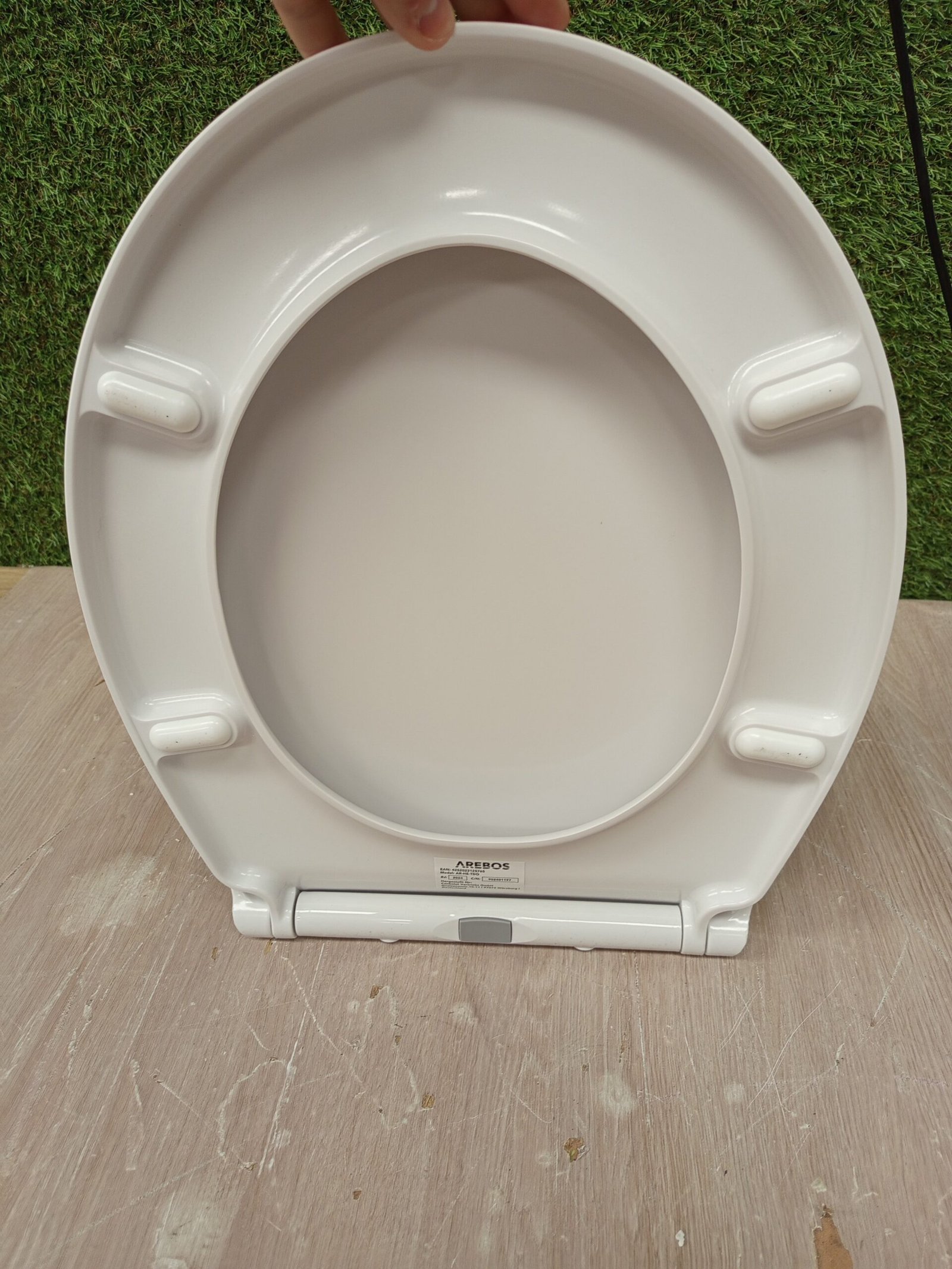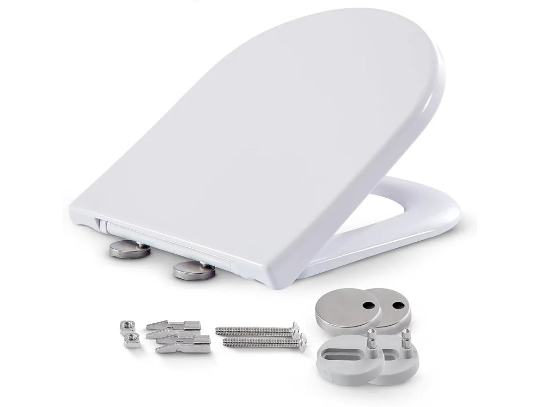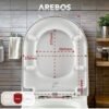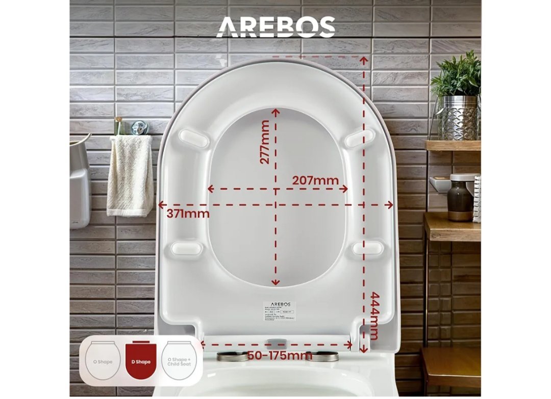 Arebos Tapa WC, Asiento de inodoro con dispositivo de descenso automático, Duroplast en forma de D, universal, carga máxima de 150 kg, asiento de inodoro con tapa de inodoro, fácil montaje