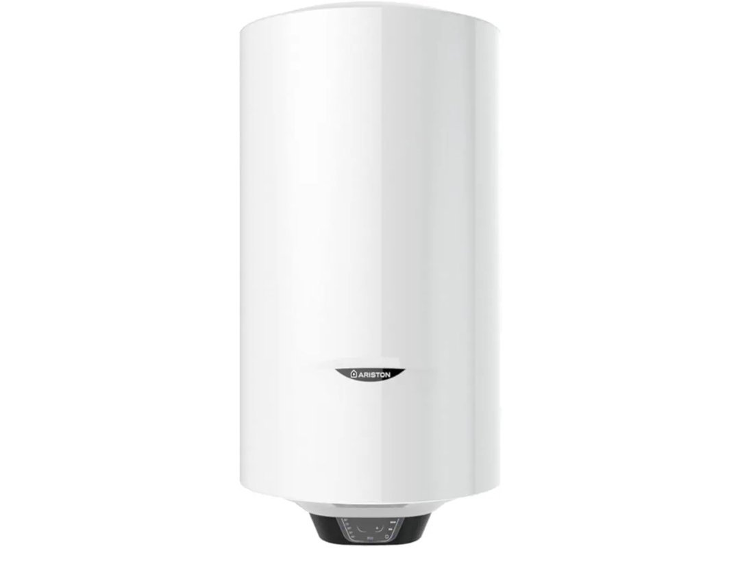 Ariston Pro1 Eco Slim – Termo Eléctrico 65 Litros Bajo Consumo Vertical, Calentador de Agua Eléctrico con Función ECO 37,3×35,3×98,1 cm, Fabricado para Instalación en España, Eficiencia B Rango (A+/F)ADECUADO PARA CUALQUIER ESPACIO: Pro 1 ECO se adapta a cualquier espacio con un diámetro super reducido de sólo 35,3 cm. El recubrimiento interior de Titanio evita la corrosión y la cal, contando además con 3 años de garantía total y 5 años de garantía en el calderín. Asegura ECO Resistencia eléctrica de bajo consumo y alta eficiencia energética, ideal para 2 personas
