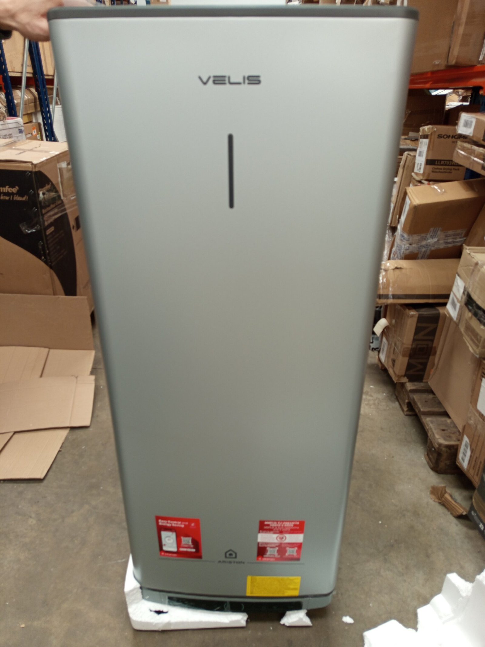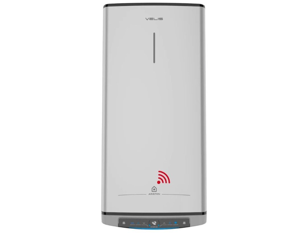 Ariston Velis Tech Dry Wifi (ex.Fleck Duo7)- Termo Eléctrico 100L Litros Multiposición, Calentador de Agua Eléctrico 127,2×27,5×51,1 Instalación en España Eficiencia B Rango(A+/F) Compatible con Alexa