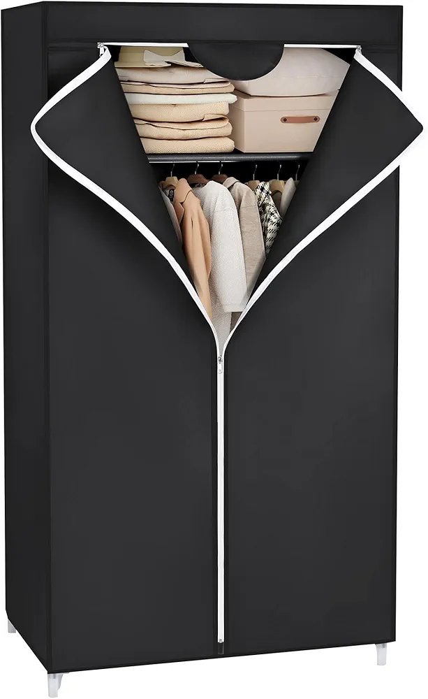 SONGMICS Armario de Tela, Armario Plegable con Barra de Colgar, Perchero Individual, Organizador de Bolsas, Juguetes, Zapatos, Sala, Dormitorio, 75 x 45 x 160 cm, Negro RYG83H