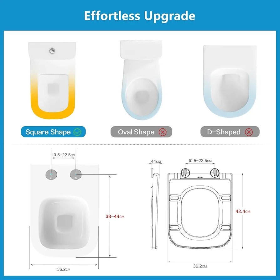 Tapa Wc Forma Cuadrado,YEAUPE PRO Asiento de inodoro cuadrado con cierre suave y liberación rápida para una fácil limpieza,universal para inodoros de forma cuadrada,42,2 * 36,2 * 4,4CM