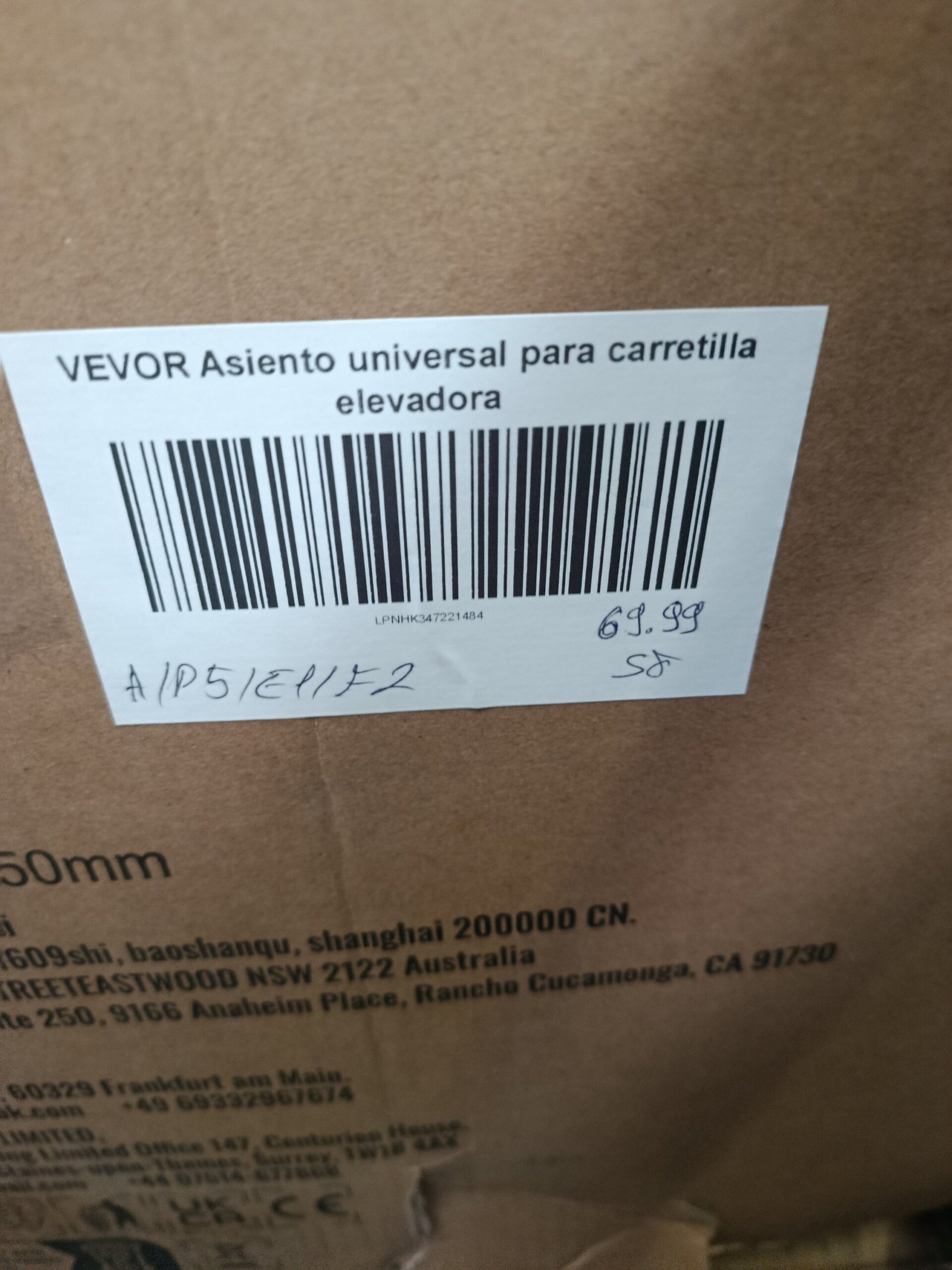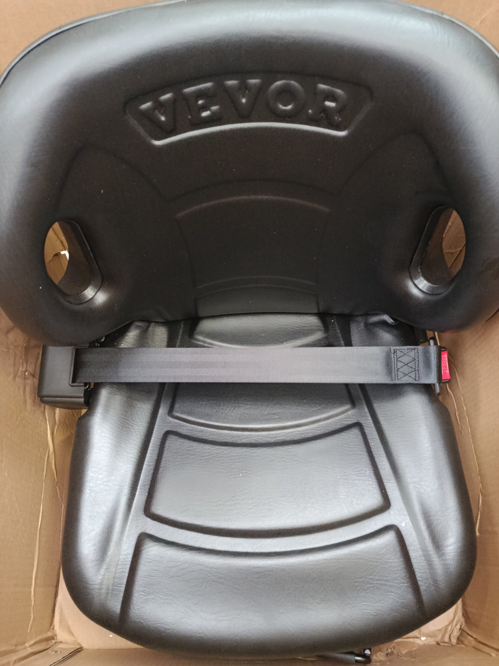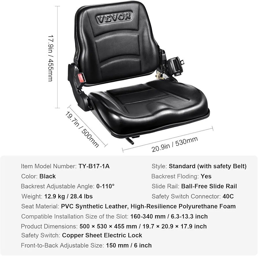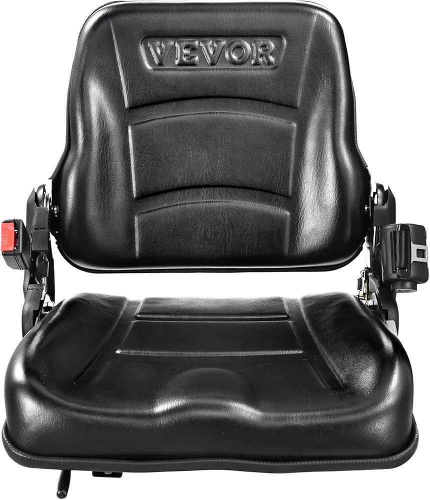 VEVOR Asiento Universal para Carretilla Elevadora, Asiento Plegable para Tractor con Respaldo Ángulo Ajustable, Cinturón de Seguridad Retráctil, Asiento para Carretilla Elevadora de 6 Ranuras