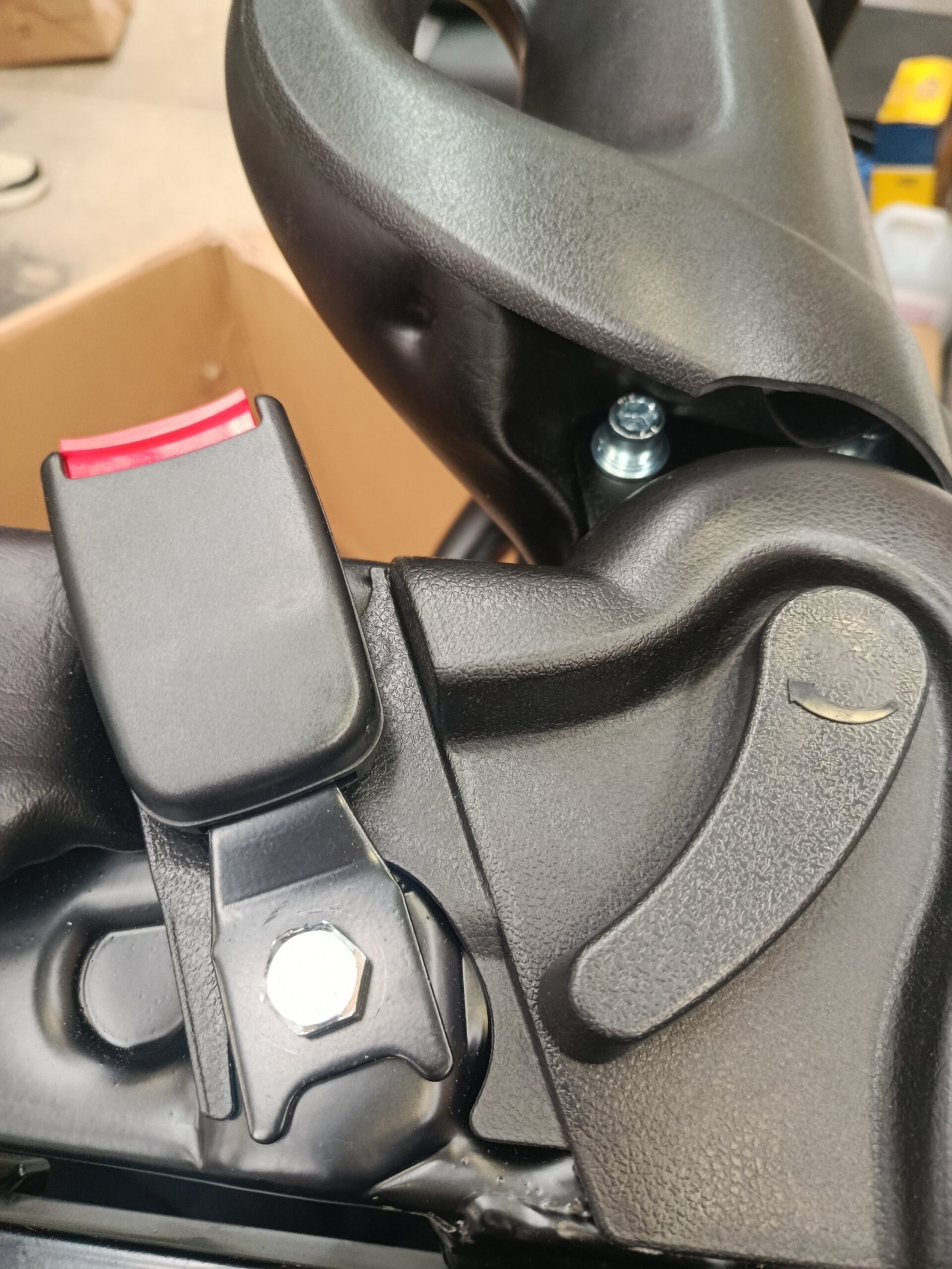 El asiento está equipado con un microinterruptor con sensor de gravedad para mayor seguridad. La carretilla elevadora sólo se puede activar cuando el conductor está sentado, lo que garantiza la seguridad en la conducción.