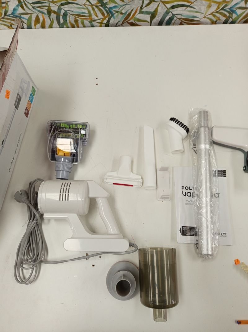 Aspiradora de mano Polti Forzaspira, prácticamente nueva. Incluye varios accesorios para diferentes superficies. Es ligera y fácil de usar.