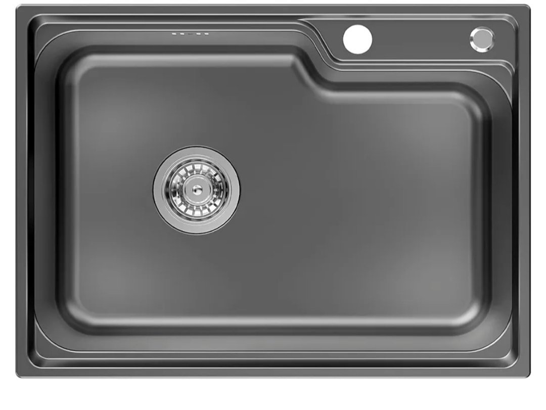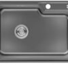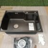 Auralum Fregaderos Cocina 62 x 45cm, Fregadero Cocina 1 Seno Negro Grisáseo de Acero Inoxidable, Moderno Fregadero Sobre Encimera, Gran Fregadero de Cocina con Desagüe, Sifón y Tapón