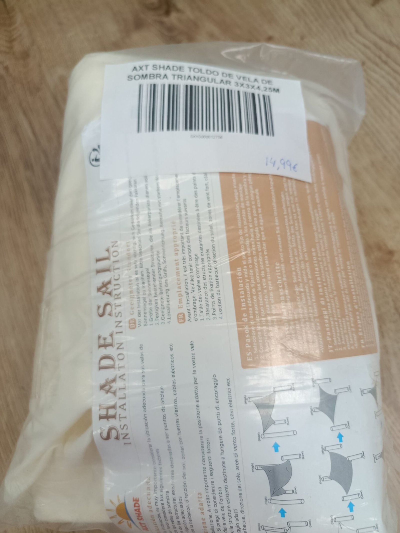 AXT SHADE Toldo Vela de Sombra Triangular 3x3x4,25m Protección Rayos UV y HDPE Transpirable para Exterior Terraza Patio Jardín-Crema