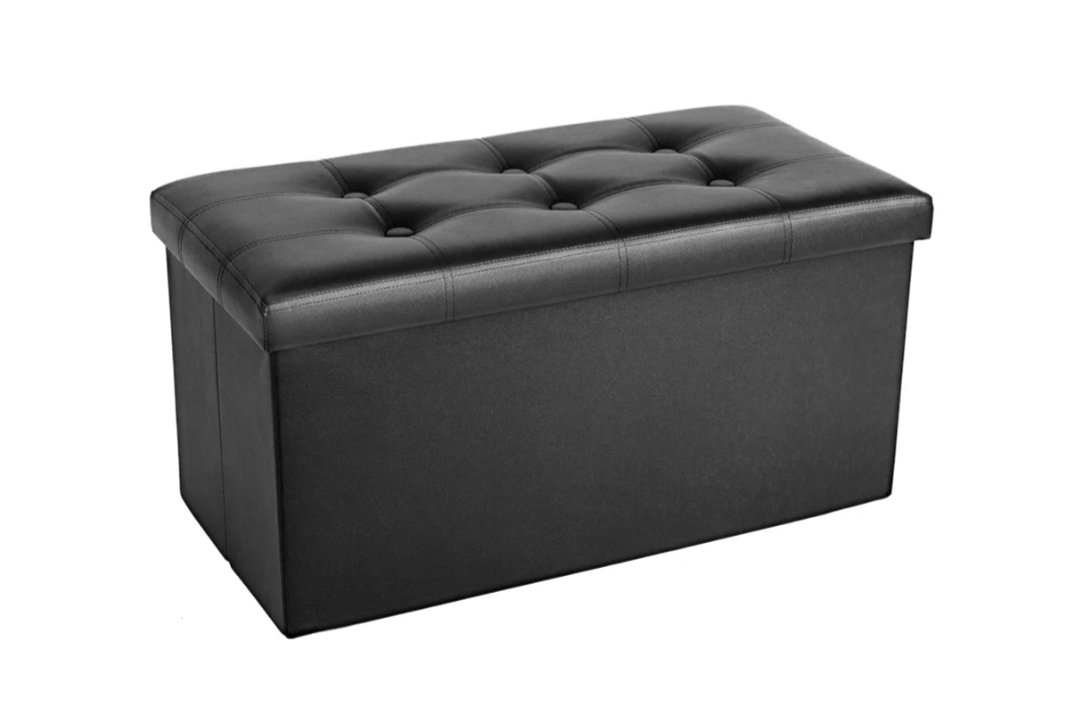 Banco de almacenaje COSYLAND de 76 x 38 x 38 cm- Banco de almacenaje tapizado – Baúl de ropa – Banco de cama con almacenaje – Banco de dormitorio de piel sintética – Reposapiés – Capacidad de carga: hasta 300 kg (Negro)