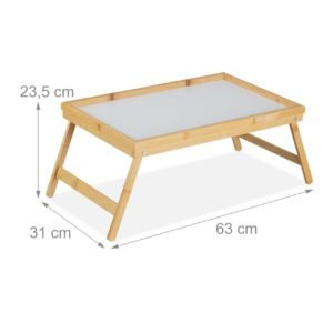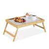 Relaxdays Bandeja Cama de Bambú y MDF, Patas Plegables, Mesita Desayuno, Mesilla Sofá, 23,5 x 63 x 31 cm, Natural/Blanco