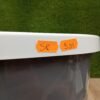 Dimensiones externas con tapa: L 52 cm x A 37,5 cm x A 36,5 cm. Dimensiones internas sin tapa: L 48 cm x A 34 cm x A 36,5 cm.