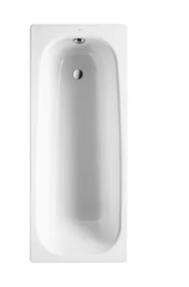 Bañera de acero en color blanco rectangular de 90 litros para instalar de forma encastrada en el cuarto de baño. Medidas: 70x100x37 cm (ancho x alto x fondo). No incluye pies, faldón lateral, frontal ni tornillería de anclaje. Desagüe de vaciado no suministrado.