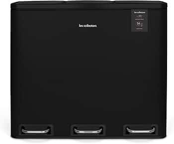 Les Collectors N°988, Papelera de Reciclaje o Basura, 3 contenedores Capacidad 54 L 3x18litros, Acero Inoxidable, Pedal en Acero, Antideslizante, Negro, Acabado Mate
