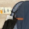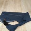 con dos cremalleras impermeables: una en el cuello para enganchar la correa, la otra en la parte trasera para unir al arnés