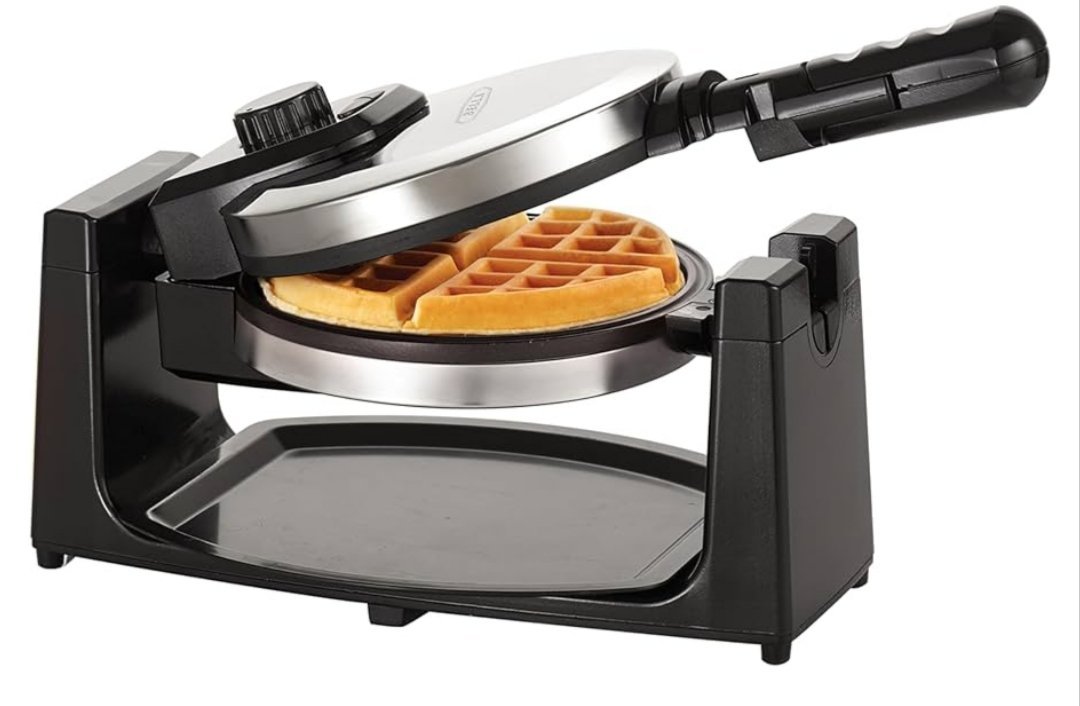 bella Gofrera para gofres belgas giratoria clásica con placas antiadherentes, bandeja de goteo extraíble, control de dorado ajustable y asas de tacto frío., Acero inoxidable