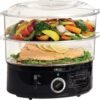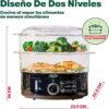 bella Vaporera de dos niveles con cestas apilables y base extraíble para una cocción rápida y simultánea. Apagado automático y protección contra ebullición en seco, 7 l, color negro.