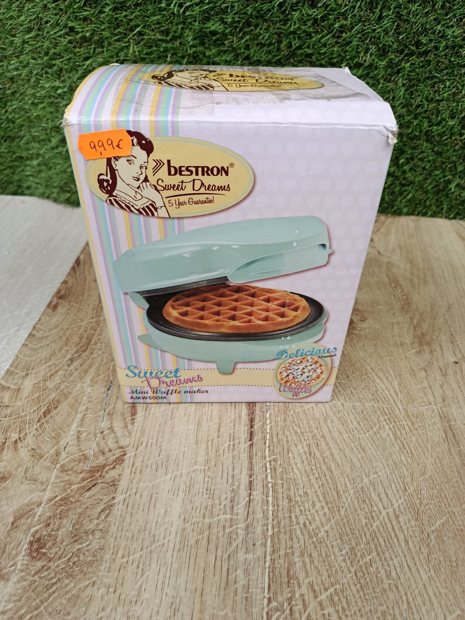 Bestron Mini gofrera, Gofrera para gofres de gofres pequeños, con antiadherente, para cumpleaños infantiles, fiestas familiares, Pascua o Navidad, diseño retro, 550 W, color: Mente