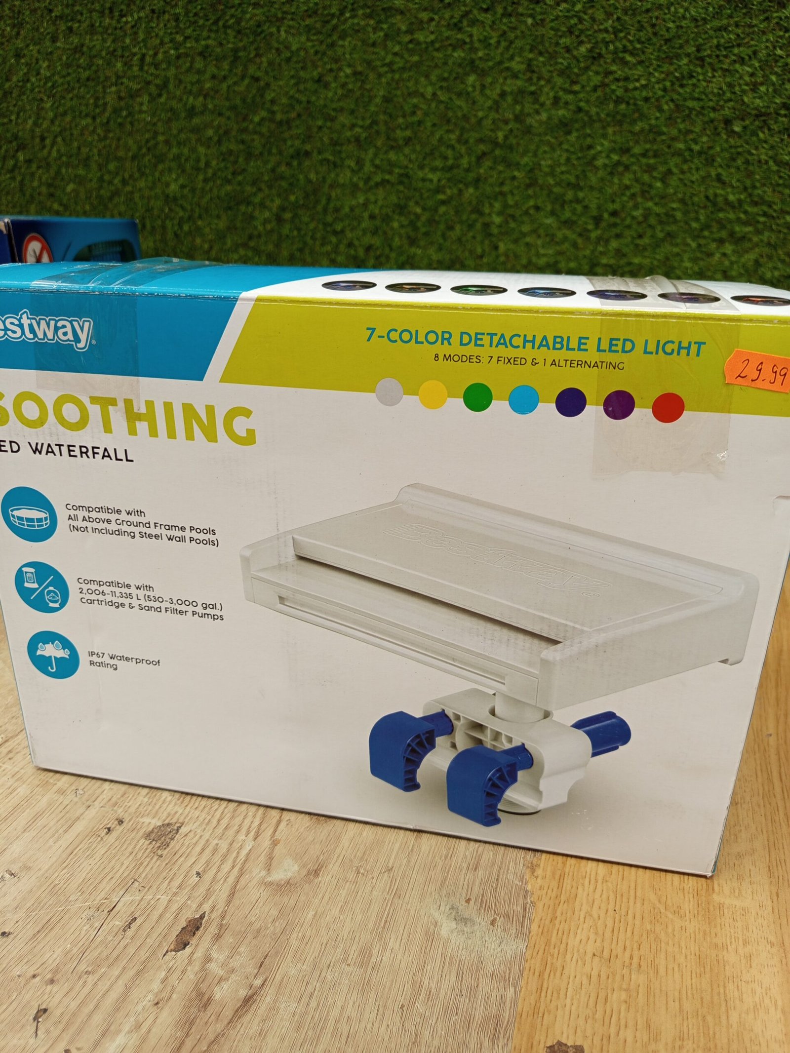 Relájate con la cascada LED Soothing para piscinas de Bestway. Este accesorio es resistente a la inmersión, está protegido contra el polvo y es compatible con casi todas las piscinas elevadas que utilicen depuradoras de cartucho o arena de 2.006-11.335 L/h.