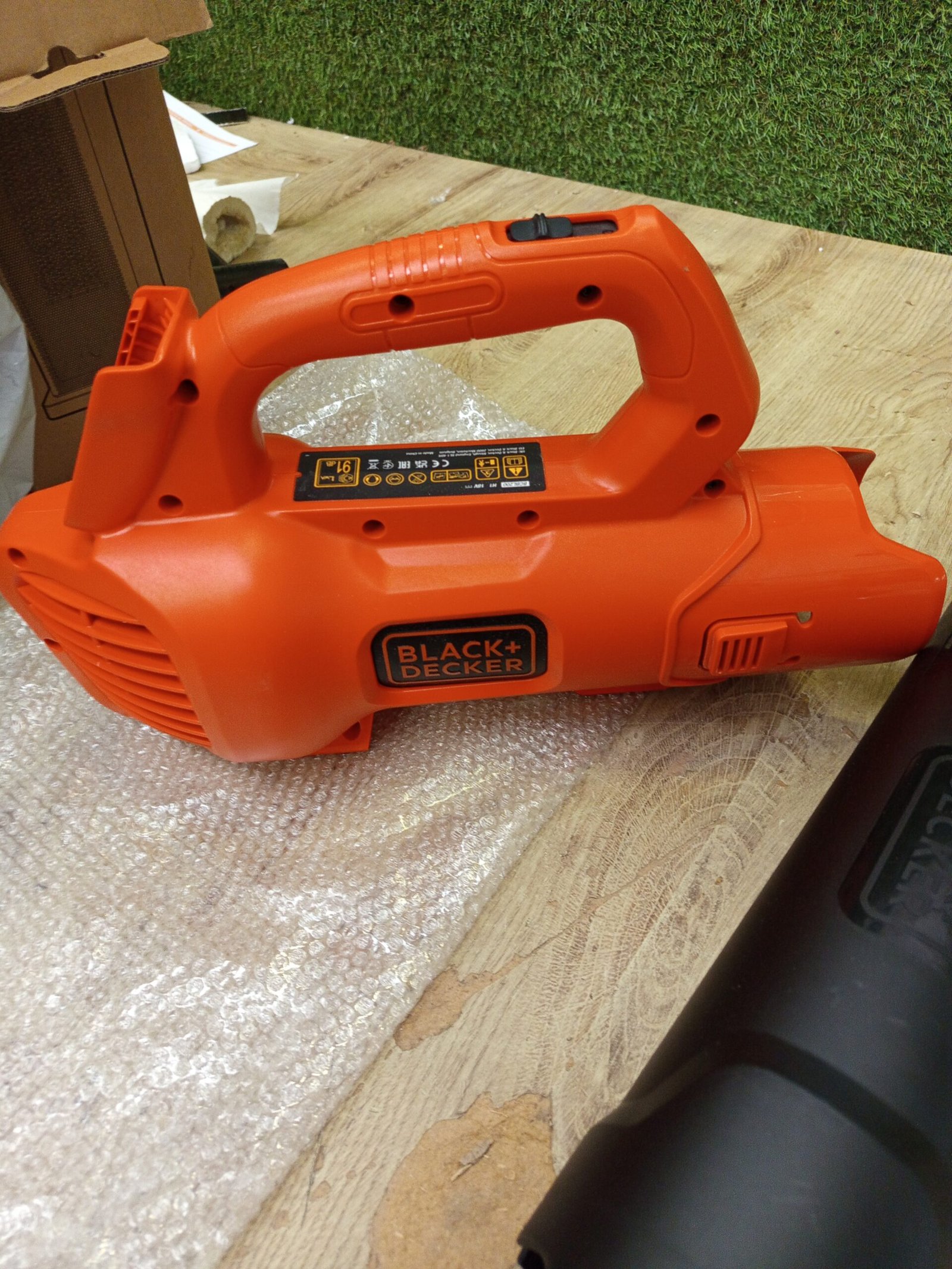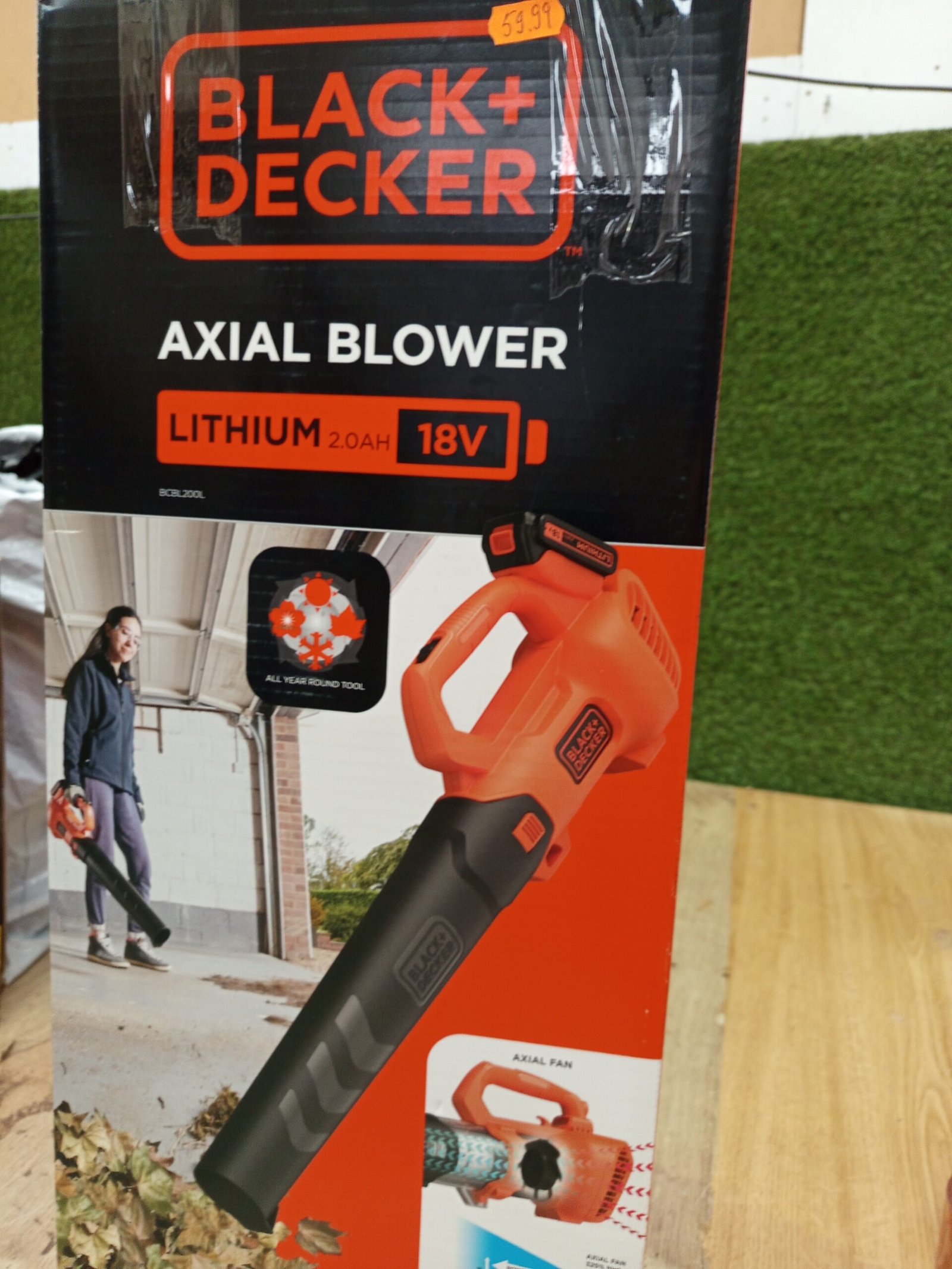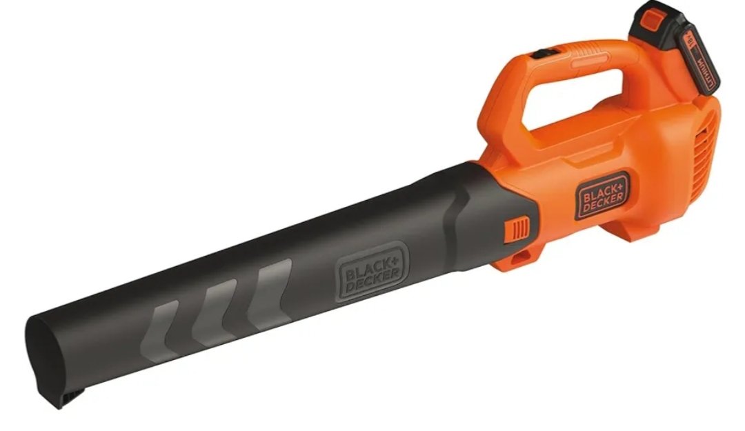 Black+Decker Axial BCBL200L – Soplador de hojas con batería (18 V, 2,0 Ah, alta velocidad de soplado de 145 km/h, volumen de aire 577 m³/h, raspador de hojas integrado, para patios, caminos, jardines