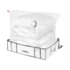 Permite almacenar al vacío el equivalente a un edredón doble + 2 almohadas por caja de almacenamiento.
