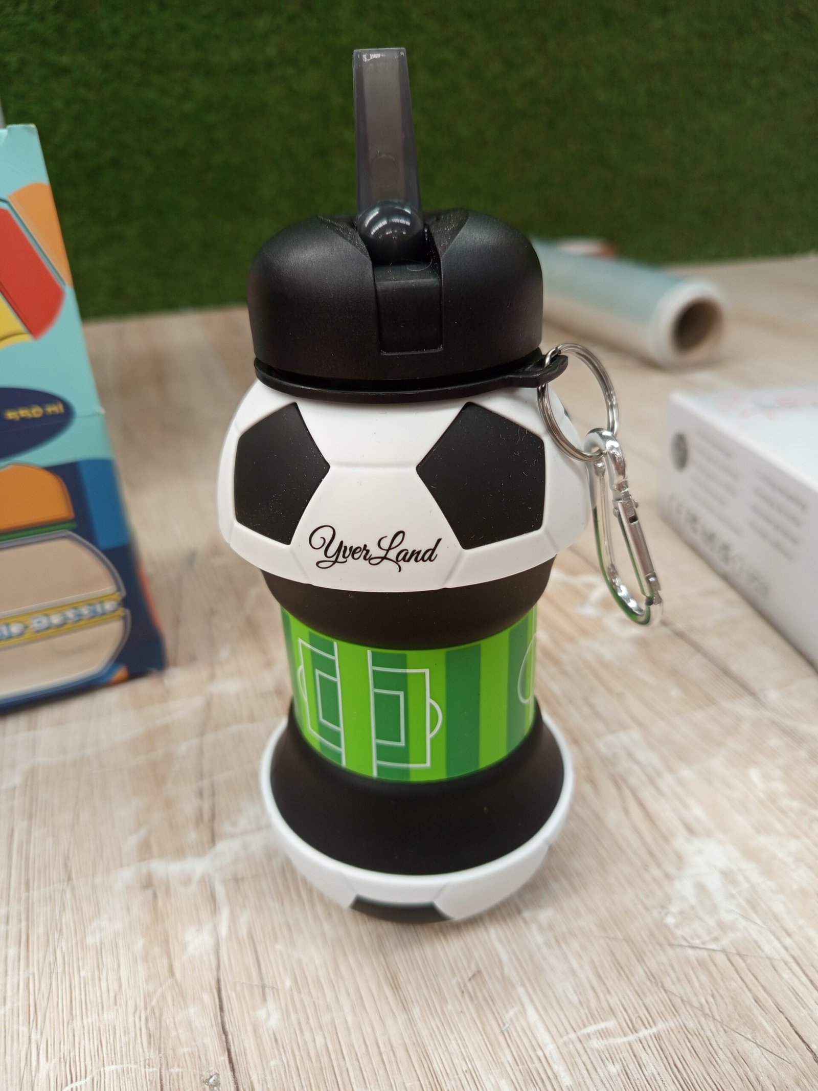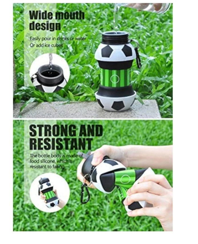 Botella de agua de fútbol, regalo único de fútbol para niños y niñas, botella de agua fresca para niños, plegable, a prueba de fugas, botella de agua para niños, sin BPA, 550 ml