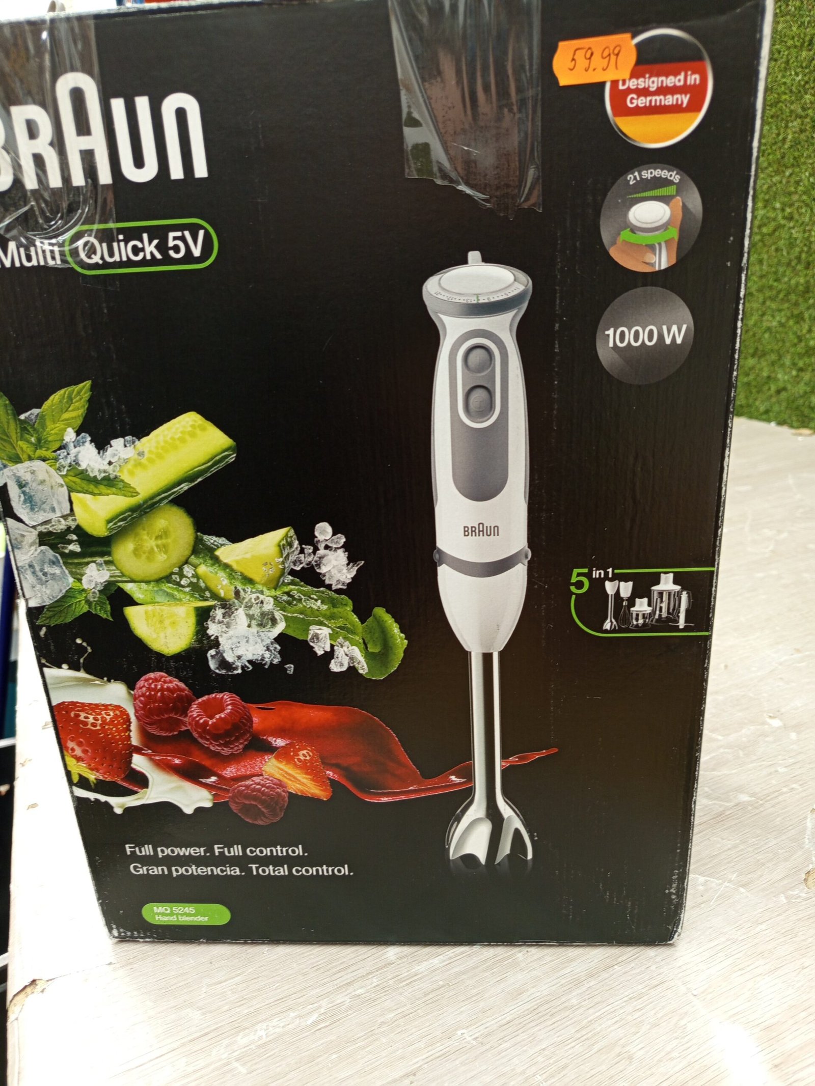 la batidora posee una potencia de 1000 w, y la velocidad se puede regular gracias al selector con 21 velocidades y función turbo para obtener mejores resultados en cualquier preparación