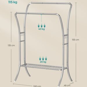SONGMICS Burro de Ropa Portátil Doble Barra Plata HSR109E01