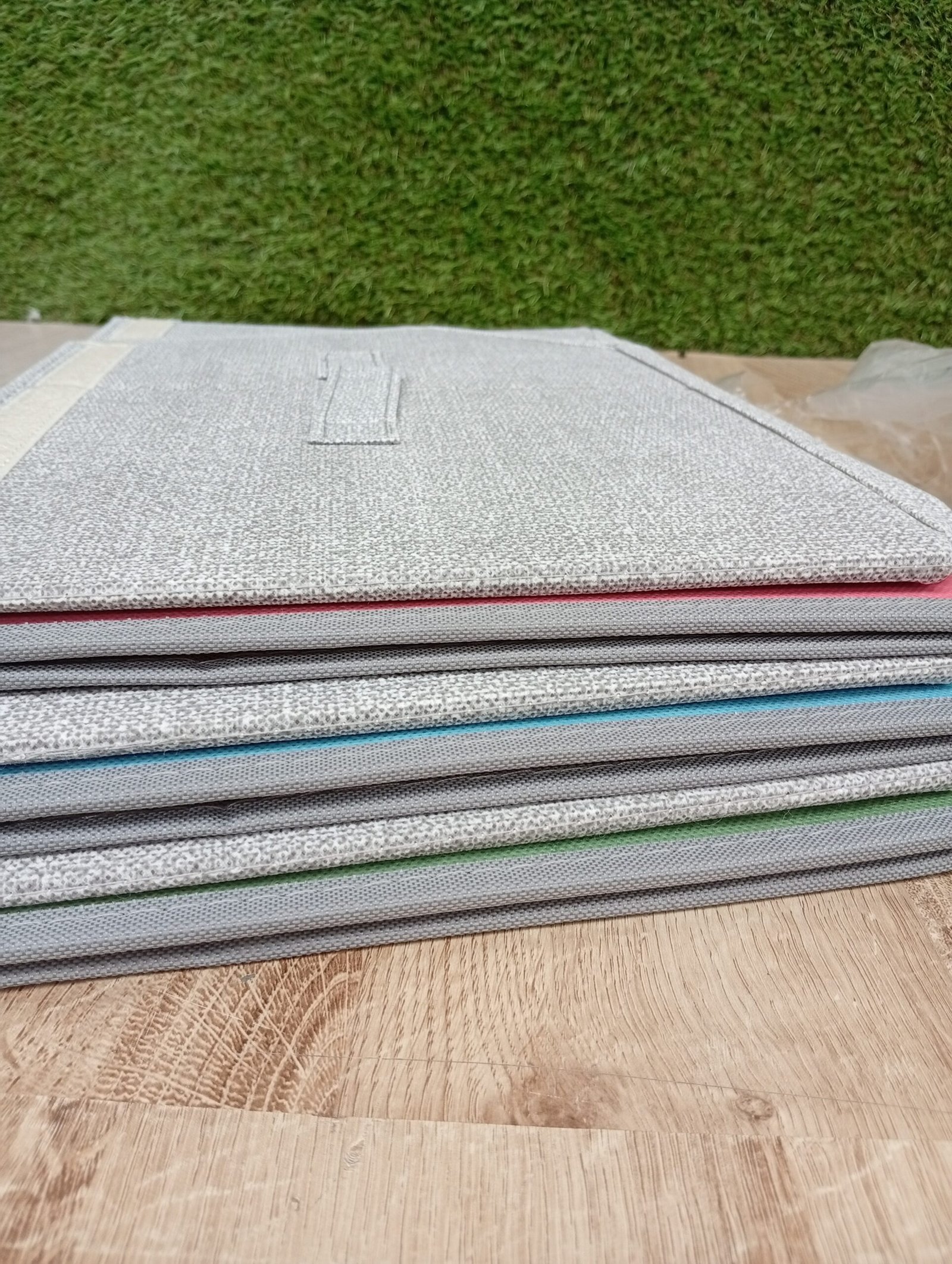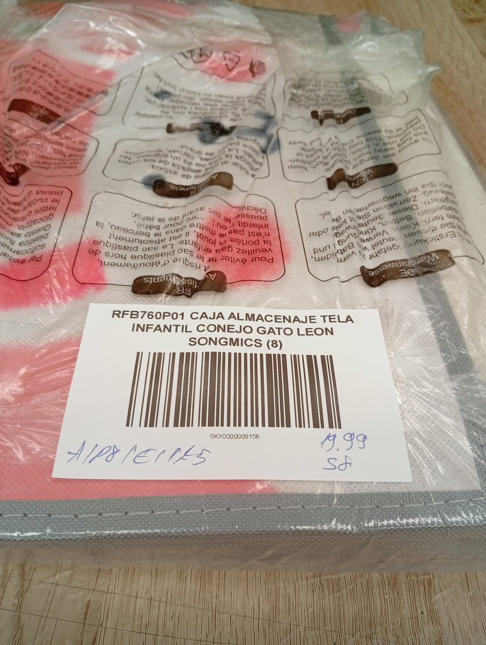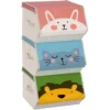 SONGMICS Caja Almacenaje Tela Infantil, Caja Organizadora Plegable, Juego de 3, Apilables con Asas, Tapa Magnética, para Habitación de Niños, Conejo Gato León, Rosa, Azul, Verde y Gris RFB760P01