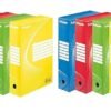 Caja de archivo Esselte Boxy COLOR – Tamaño 25 x 35 x 8 cm, para documentos A4, 100% reciclable, con certificación FSC, paquete de 8 unidades, colores surtidos – 128409