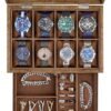 SONGMICS Caja de Relojes con 8 Ranuras, Estuche de Relojes de Madera de 2 Niveles con Tapa de Cristal, Almohadillas, Forro de Terciopelo, Regalo de Seres Queridos, Nogal Rústico JOW008K01