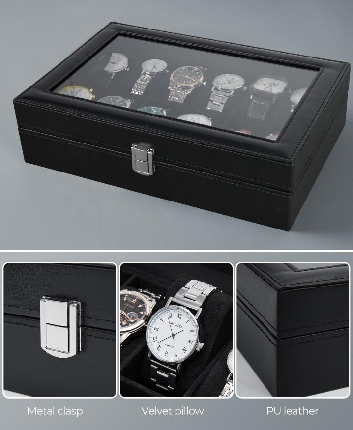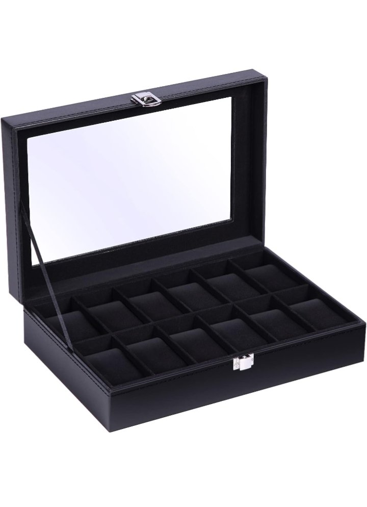 Caja Relojes con 12 Compartimentos, Ohuhu Caja para Relojes con Tapa de Cristal y Cojín Extraíble, Regalo para Cumpleaños Día del Padre Navidad