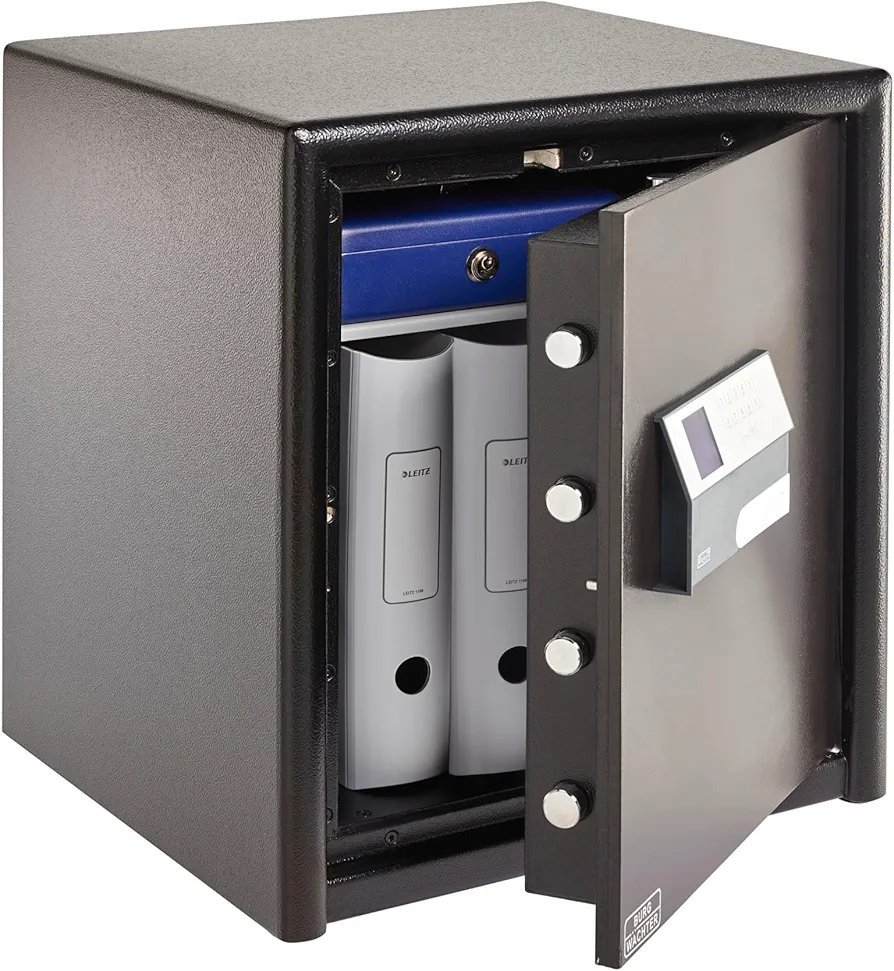 Para proteger documentos y archivadores de manera ideal, esta caja fuerte resistente al calor está fabricada con material ignífugo conforme a la norma DIN 4102. La caja fuerte ofrece una resistencia al fuego de LFS 30 P, la cual ofrece una protección antincendios de 30 minutos en papel.