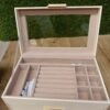 Almacenamiento de 4 niveles: Guarda tus accesorios de forma ordenada en esta caja de joyas. Las joyas pequeñas se guardan en los compartimentos de diferentes tamaños, las gafas de sol y los relojes están en el cajón grande del fondo