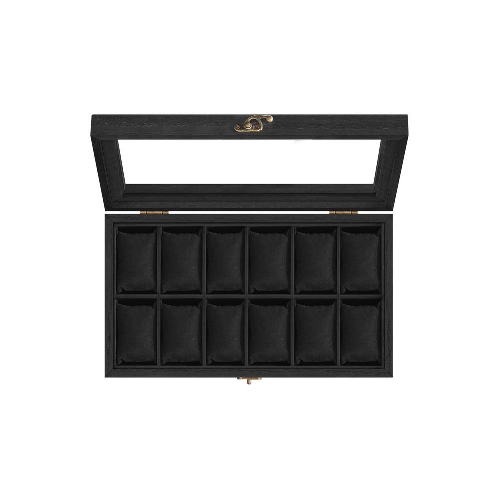 SONGMICS Caja para Relojes con 12 Compartimentos Negro Tinta JOW120B02