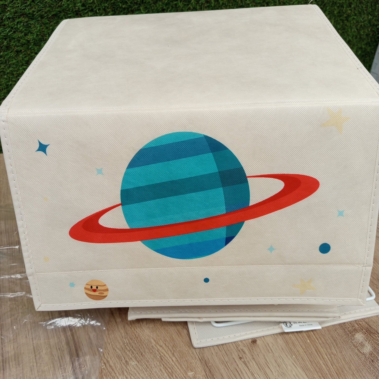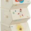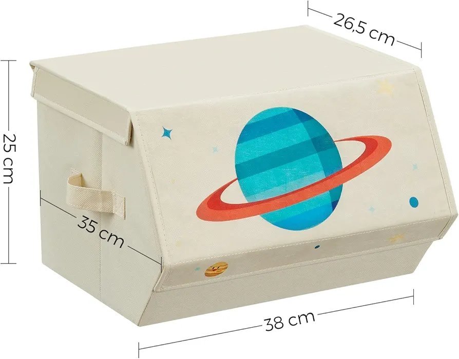 SONGMICS Cajas de Juguetes para Niños, Juego de 3 Cajas de Almacenamiento Apilables y Plegables, con Asas y Tapa Magnética, Habitación Infantil y Cuarto de Juegos, Tema del Espacio, Beige RLB700M01